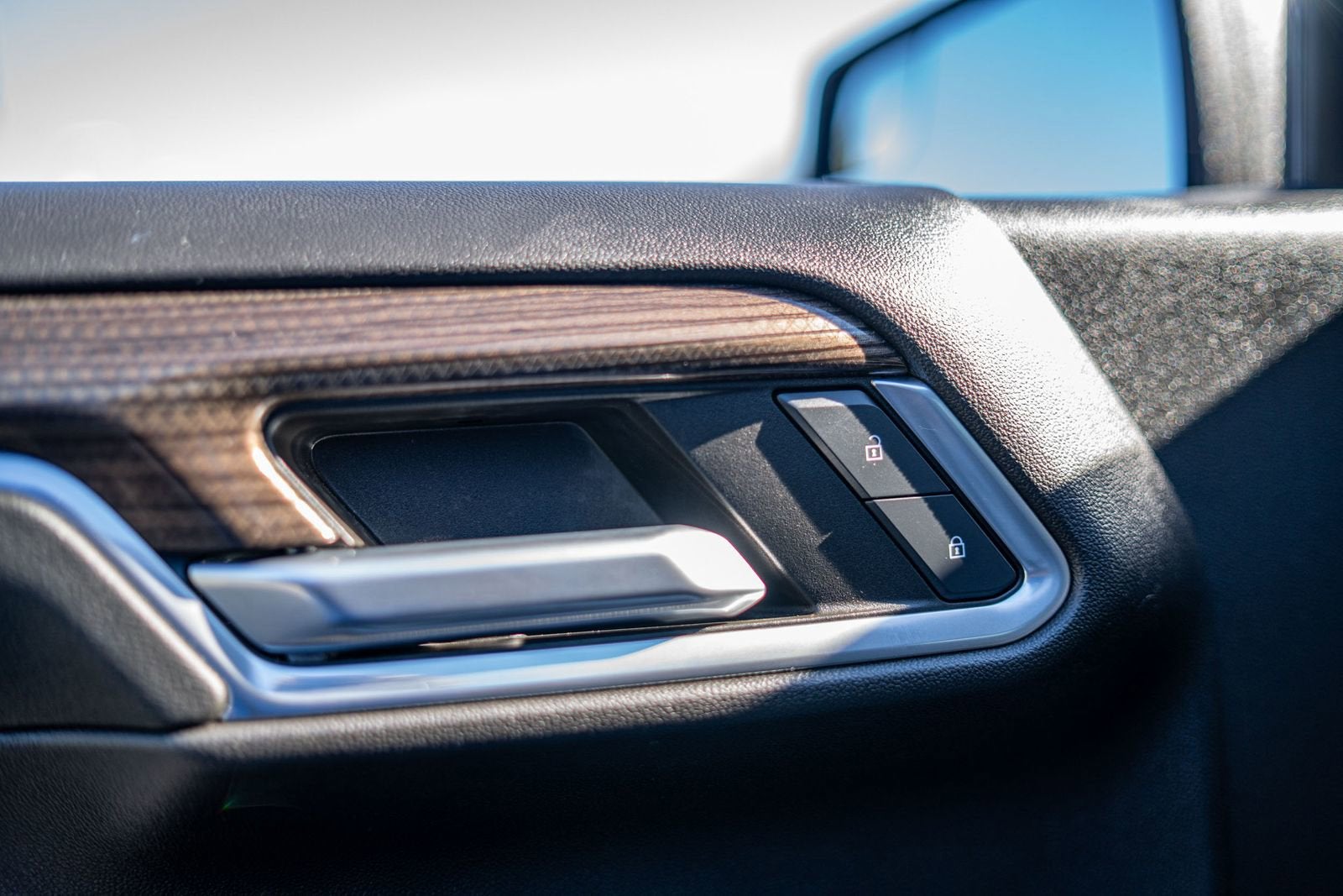 - Door panel insert: Simulated wood and metal-look door panel insert