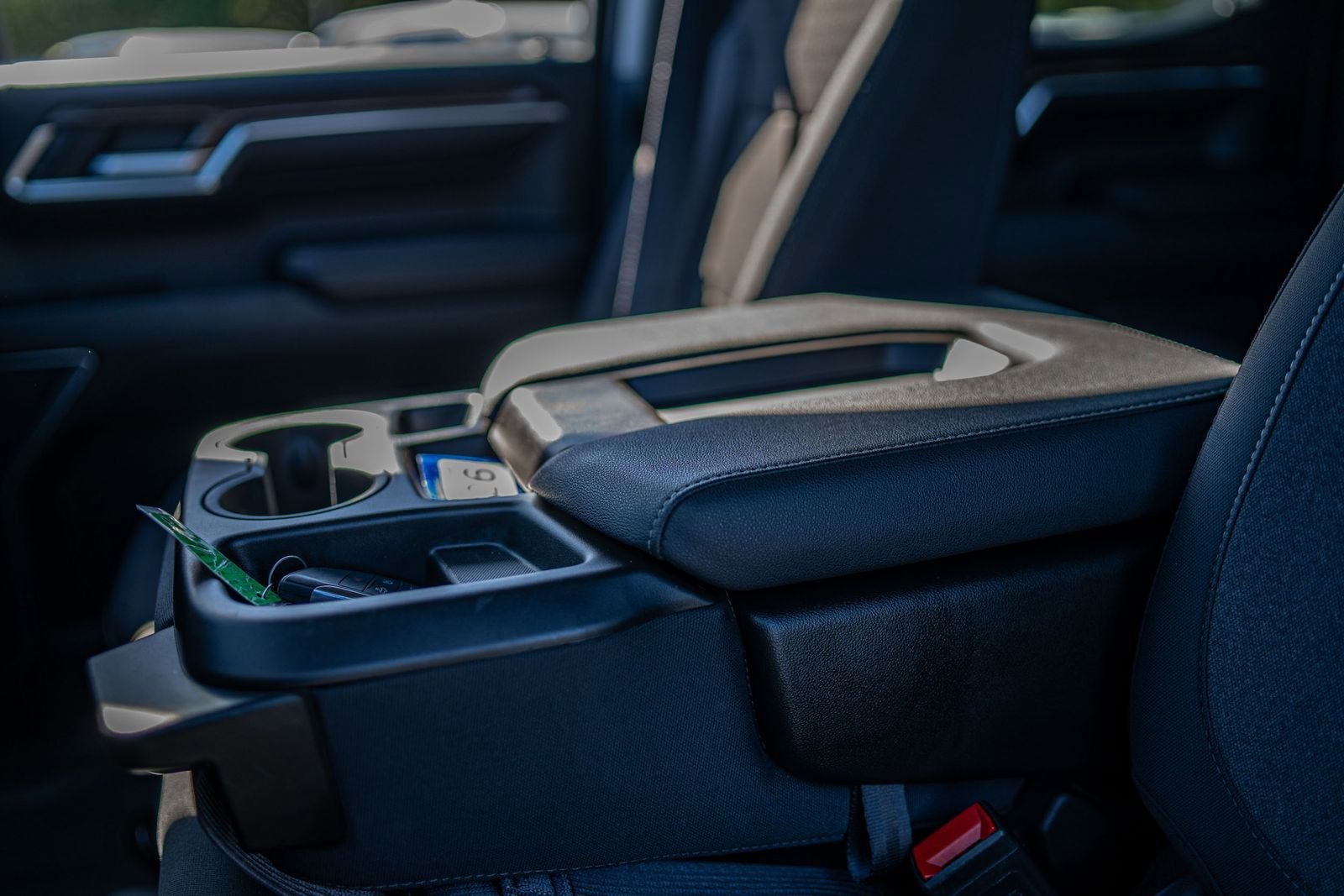- Front seat armrest storage - convenience and concealment. You can relax in a lot of ways with front seat armrest storage. You can store things close to you for easy access. Since it’s covered, you can also keep your smaller valuables out of sight to reduce the risk of theft. And, of course, you have a comfortable place for your arm while you drive. When it comes to convenience, front seat armrest storage has you covered.